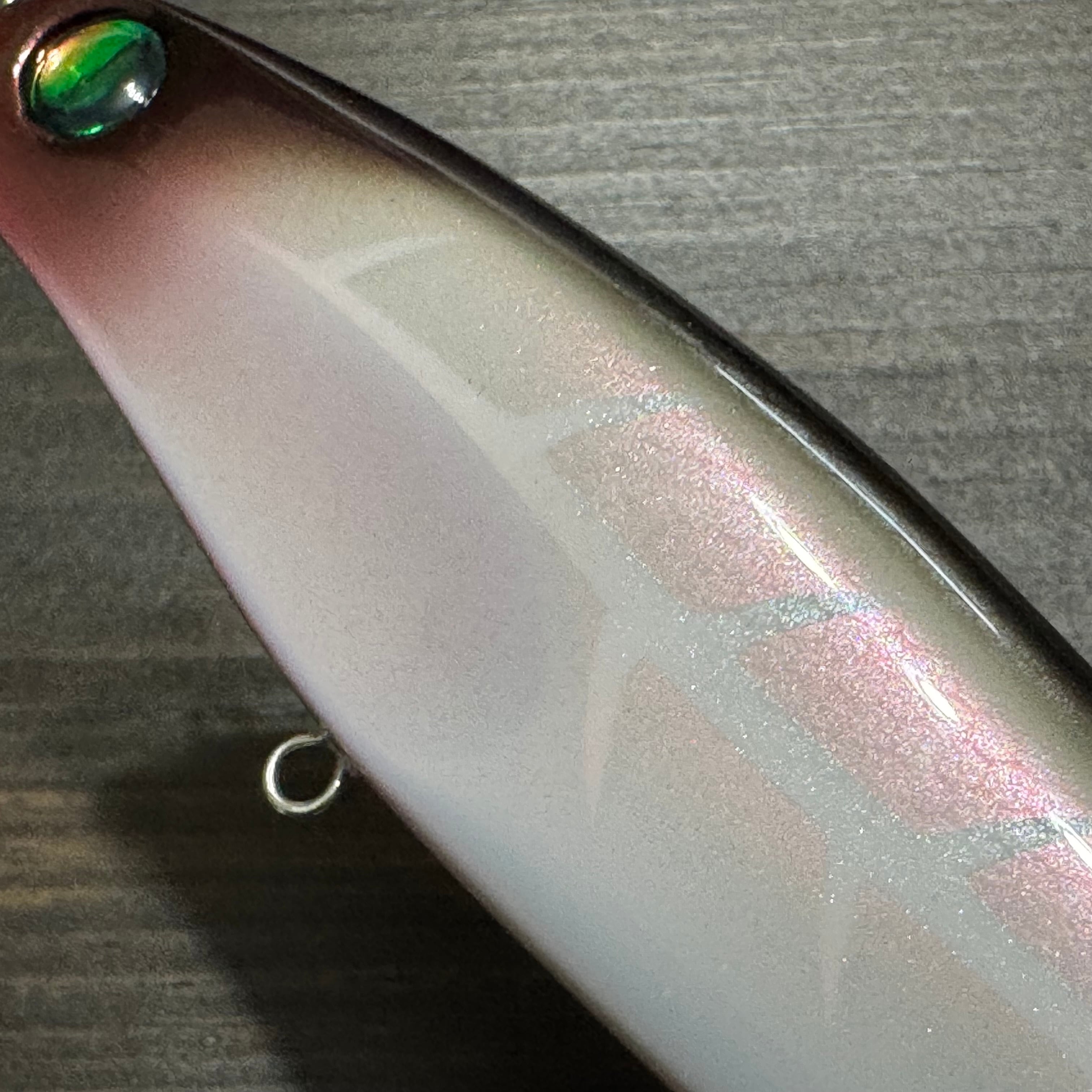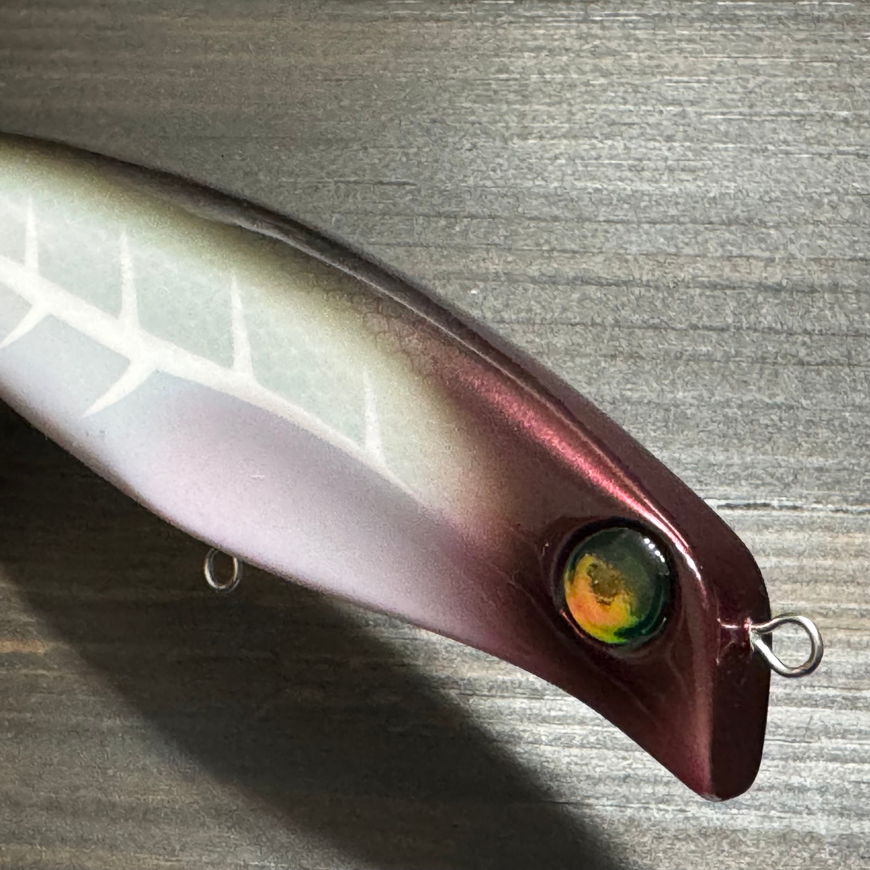 この140Fリーフシャッドは「Mクラス以上のスピニングロッドであればキャスト可能なウェイトでなるべく大きなシルエットを」というコンセプトで作られた、コノシロパターンを意識したシャッド形状のフローティングミノーです。